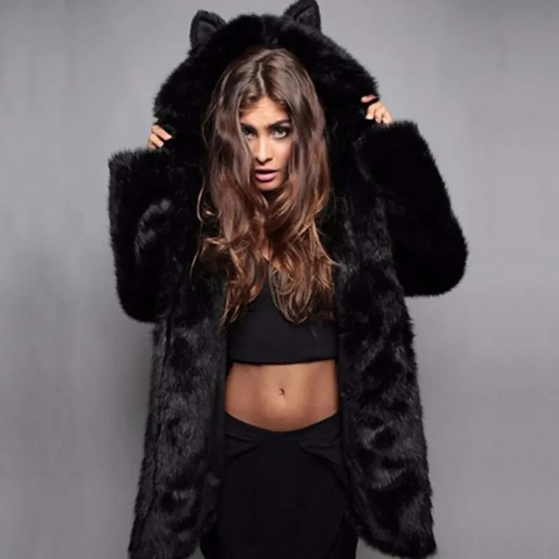 Abrígate del frío con nuestro impresionante Abrigo de Piel con Orejas de Conejo! Esta encantadora prenda de abrigo está diseñada tanto para brindar calor como para aportar un toque caprichoso, con adorables detalles de orejas de conejo que añaden un toque juguetón a tu guardarropa de invierno. Hecho de piel artificial de primera calidad, este abrigo no solo te mantiene abrigado, sino que también eleva tu estilo sin esfuerzo.